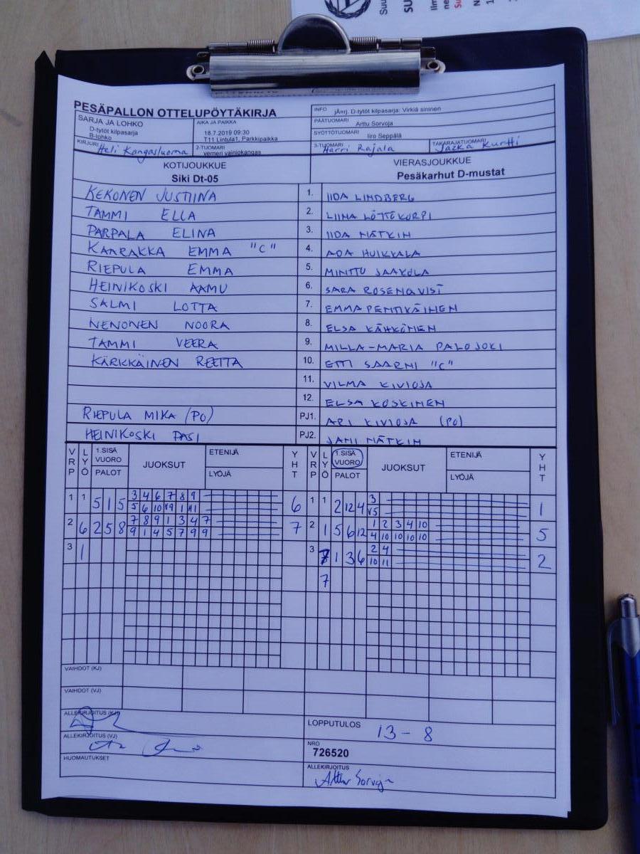 | 18.7.2019 09:30 | T11 Lintula1, Parkkipaikka | Siki Dt-05 | Pesäkarhut D-mustat | 13-8 | näytä |