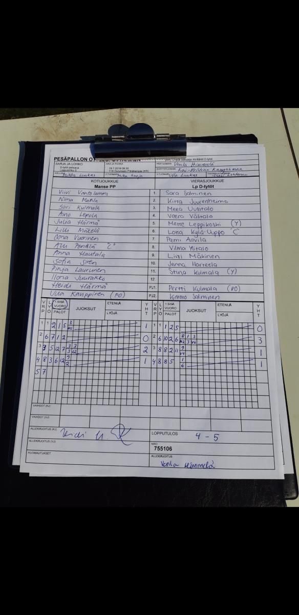 | Loppulohko S | 18.7.2019 13:00 | T15 Huuhkajapuisto2 (takakenttä) | Manse PP | PattU D06-tytöt | Lp D-tytöt |