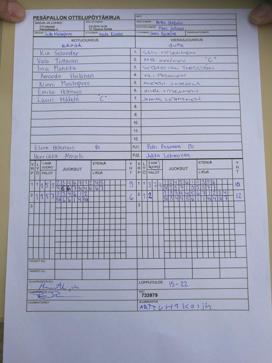| 3.8.2019 14:30 | 13. Kimmon Kenkä | Räpsä | SuPo | 15-22 | näytä |