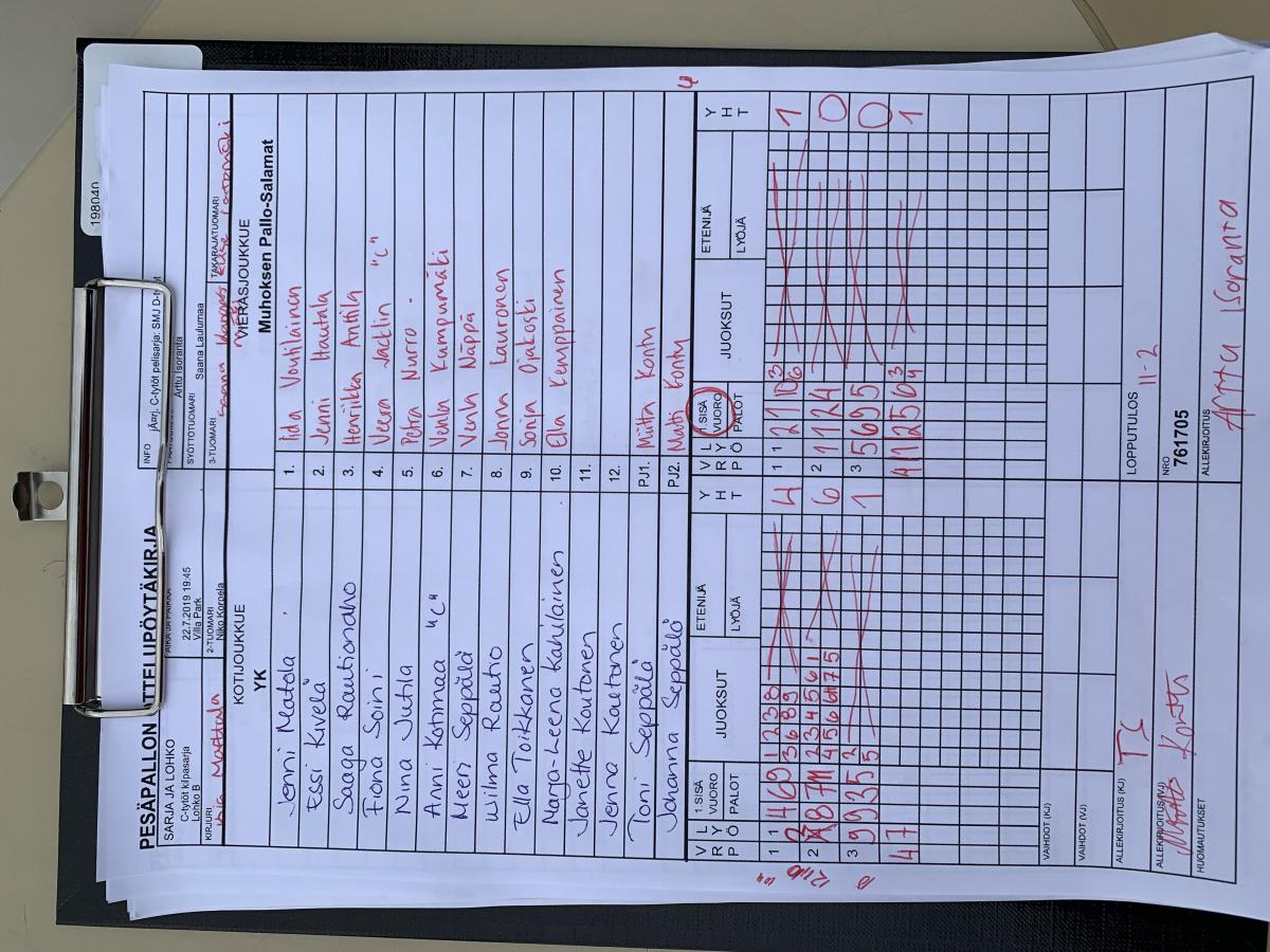 | C-tytöt kilpasarja - Lohko A | 23.7.2019 13:00 | Vehkoja | Pattu Juniorit C-tytöt | PETO | YK |