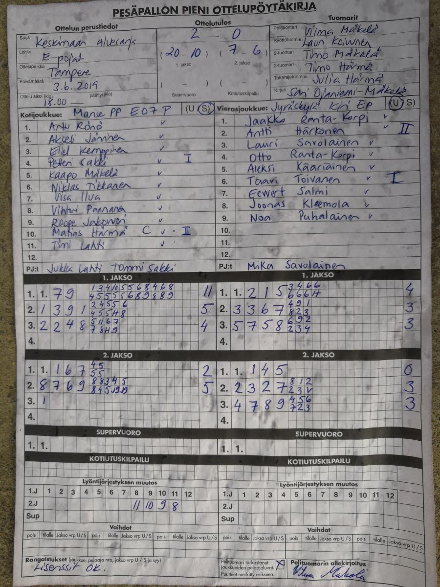 | 27.6.2019 18:00 | Manse pp E07-pojat | Räpsä E-pojat | 2-0 (16-5, 18-3) | näytä |