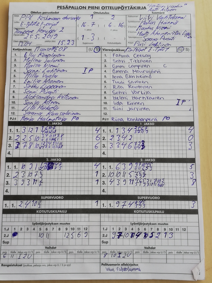| 2.6.2019 16:00 | Kumuri | Kirittäret E-tytöt | 0-2 (9-16, 8-16) |