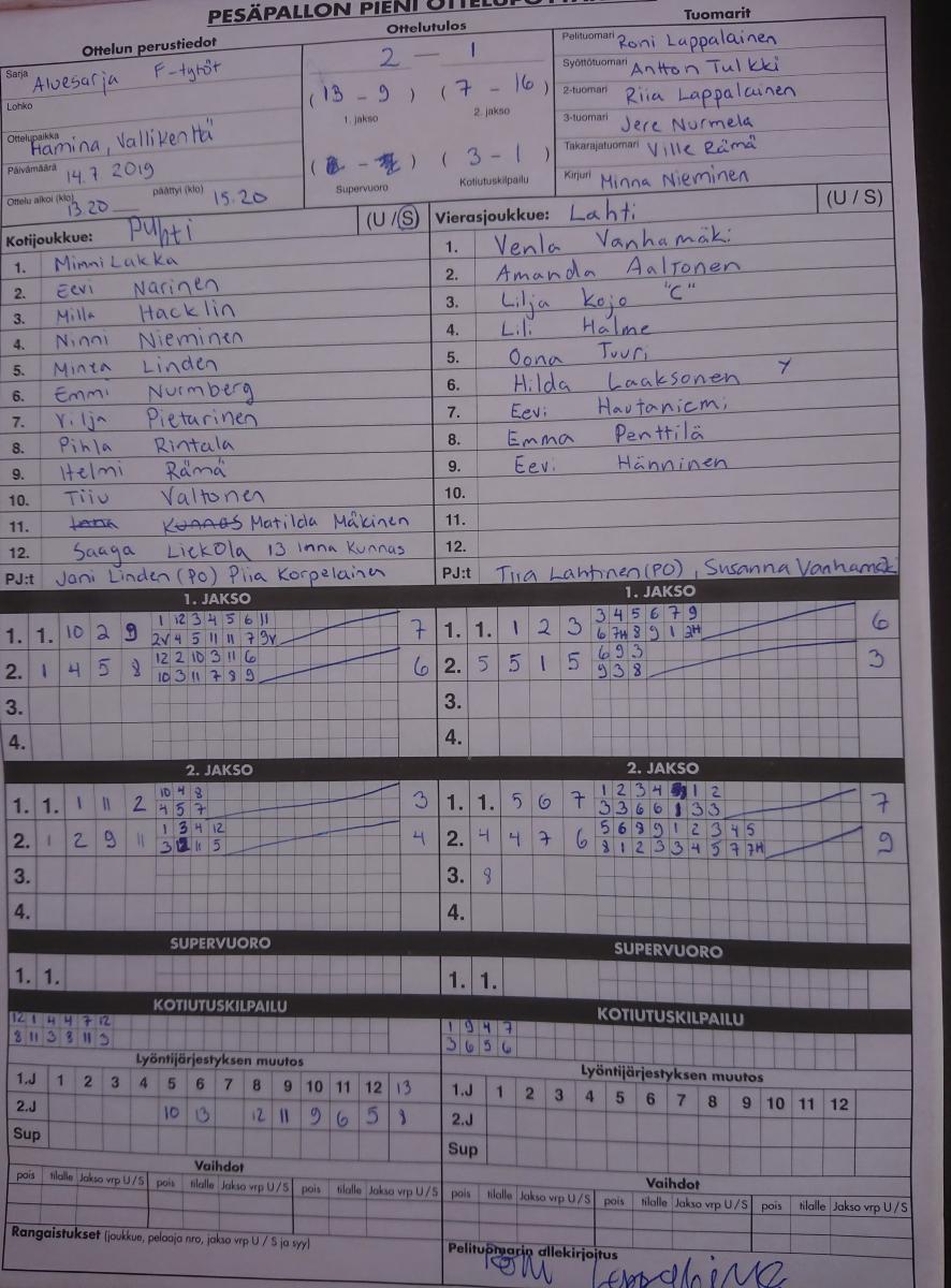 | 15.6.2019 18:00 | Lahti | LMV F-tytöt | HP | 2-0 (18-6, 8-7) | näytä |