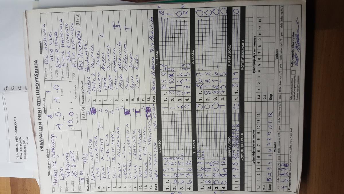 | 12.7.2019 18:00 | | Seinäjoen Maila-Jussit Punainen | Ylihärmän Pesis-Junkkarit | 0-2 (3-5, 14-20) | näytä |