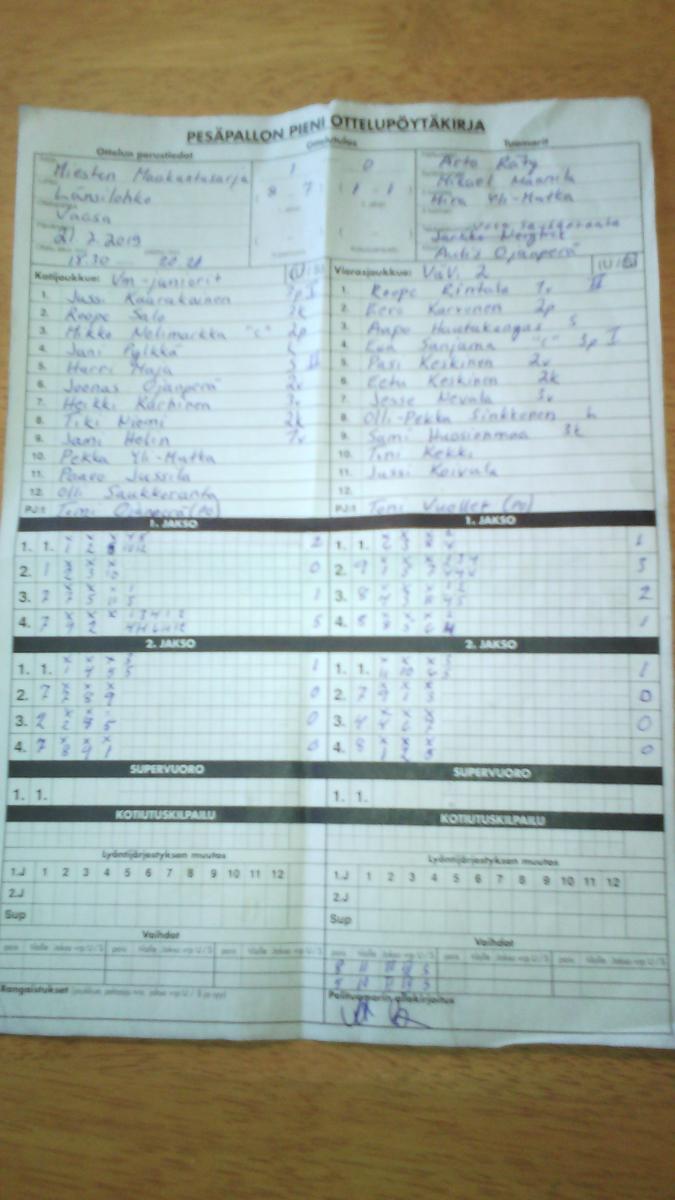 | 17.8.2019 15:00 | Vaasan Maila | Vähänkyrön Viesti | 0-1 (8-14, 8-8) | näytä | |