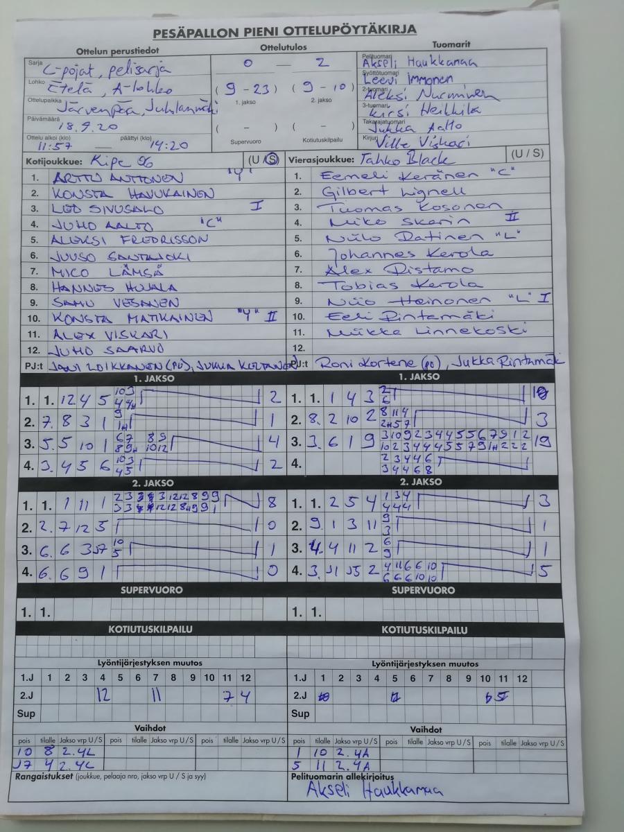 | 5.8.2020 18:00 | Kipe C pelisarja | KePe | 2-0 (31-9, 14-11) | näytä | |