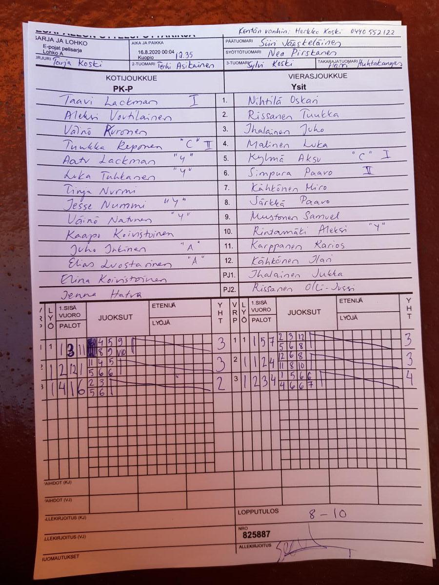 | 16.8.2020 00:02 | Kuopio | IPV White | Ysit | 12-6 | näytä |