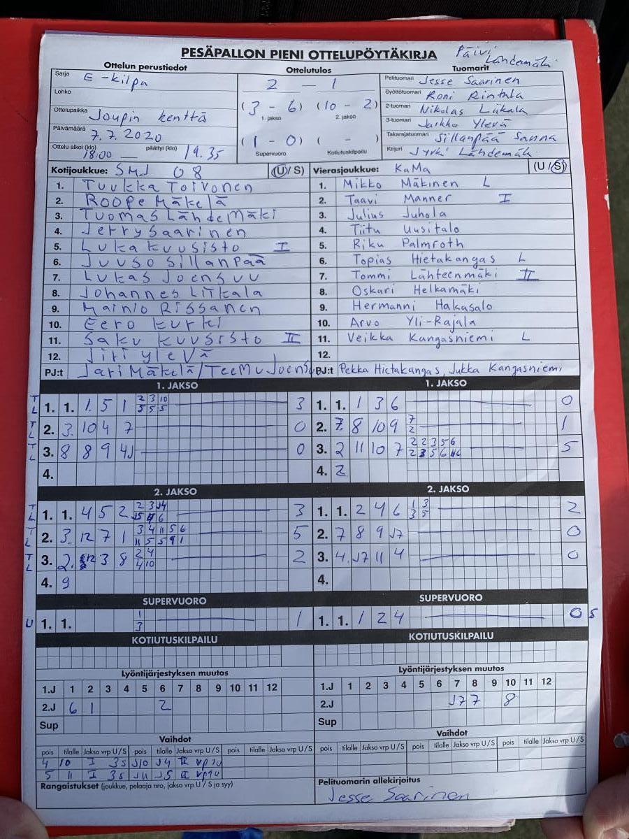 | 7.7.2020 18:00 | SMJ E-Pojat Musta | KaMa E | 2-1 (3-6, 10-2, 1-0) | näytä | |