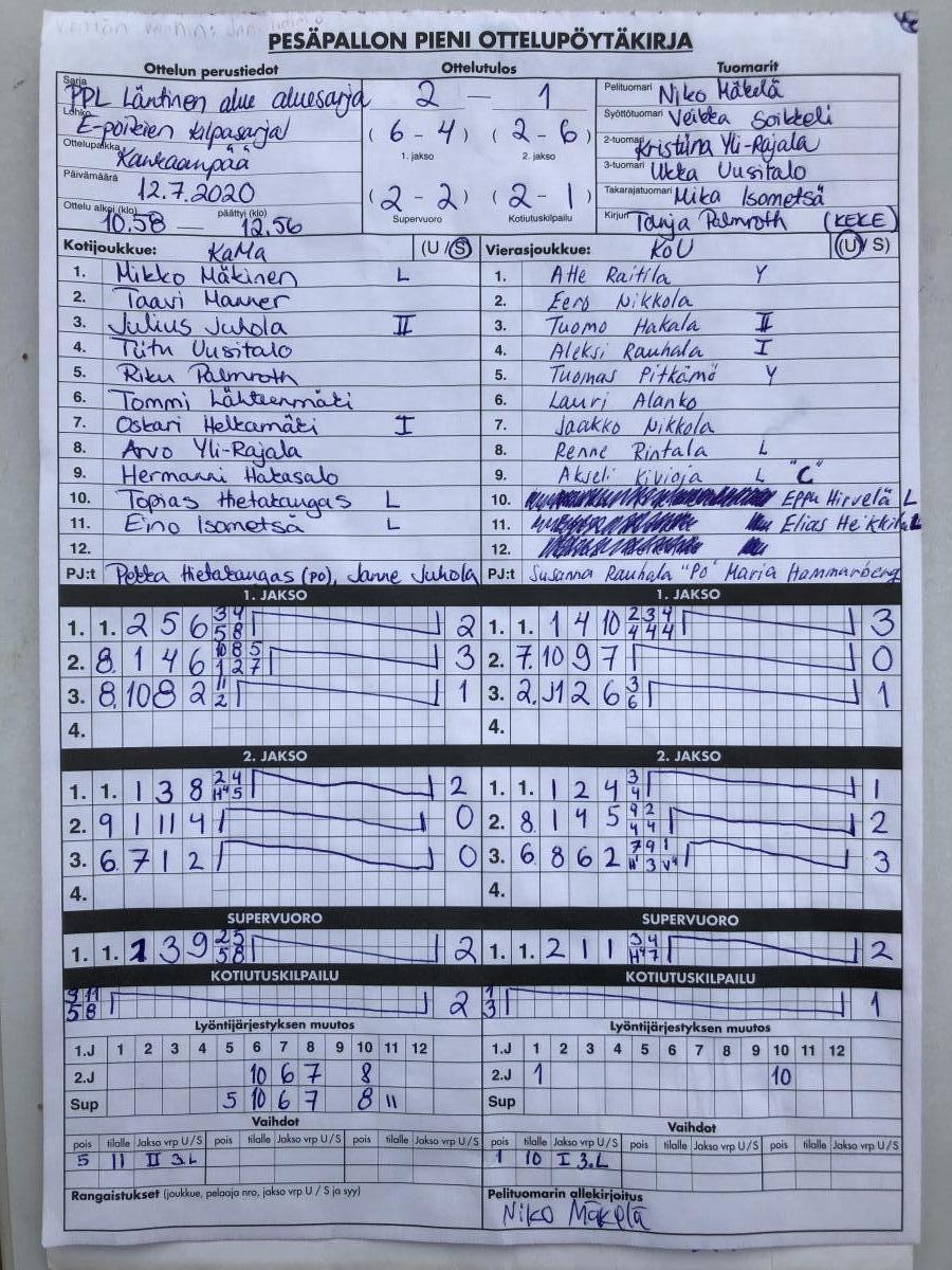 | 12.7.2020 11:00 | KaMa E | KoU E1 | 2-1 (6-4, 2-6, 2-2, 2-1) | näytä | |