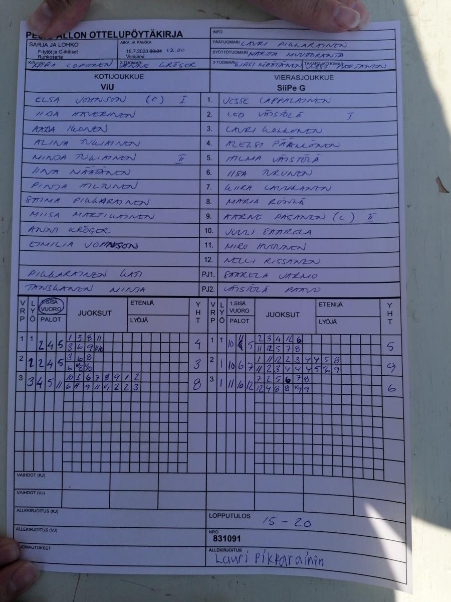 | 18.7.2020 00:04 | Viinijärvi | ViU | SiiPe G | 15-20 | näytä |