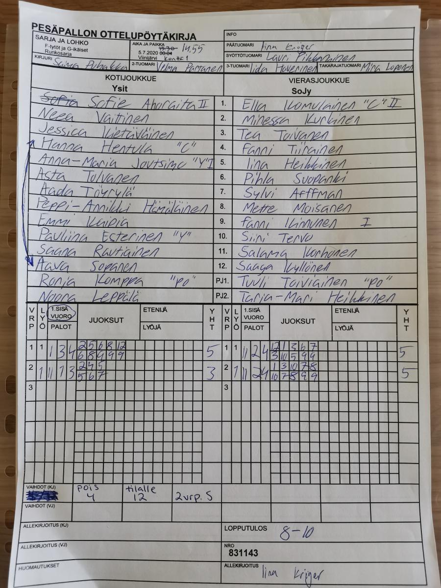 | 5.7.2020 00:04 | Viinijärvi | Ysit | SoJy | 8-10 | näytä |