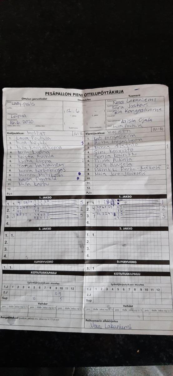 | 16.6.2020 19:00 | Tinttaliisat Musta | Tinttaliisat Violetti | 12-6 | näytä | |