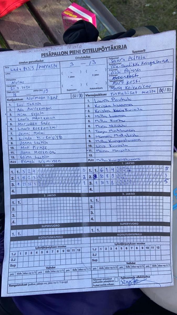 | 21.7.2020 18:00 | Nurmoon likat | Tinttaliisat Musta | 3-13 | näytä | |