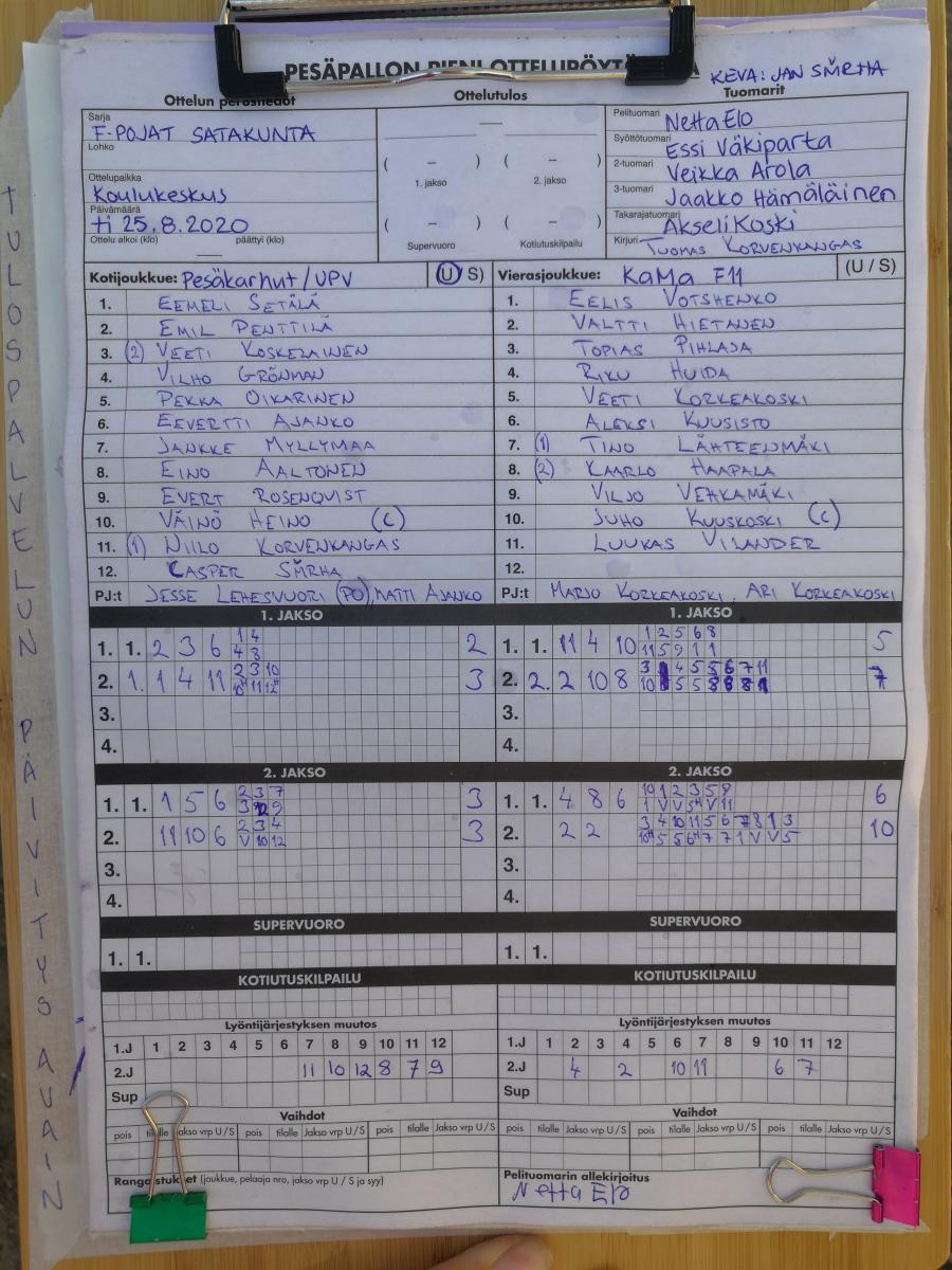 | 22.6.2020 18:00 | KAMA F11 | Pesäkarhut/UPV | 2-0 (11-7, 19-11) | näytä | |