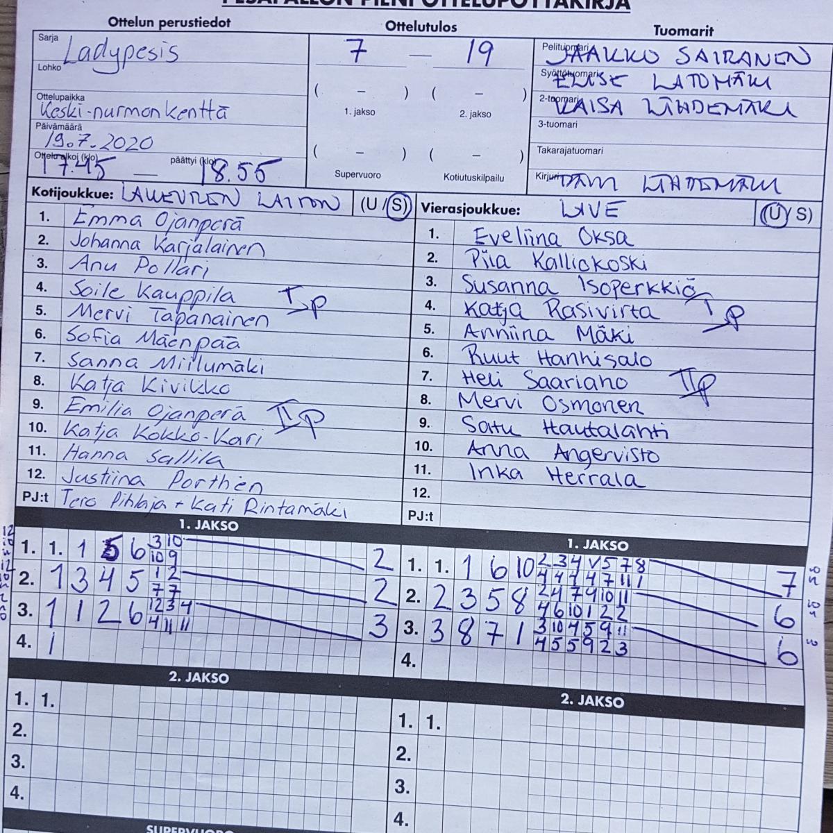 | 19.7.2020 17:30 | LaVe | Lakeuren Laiton | 19-7 | näytä | |