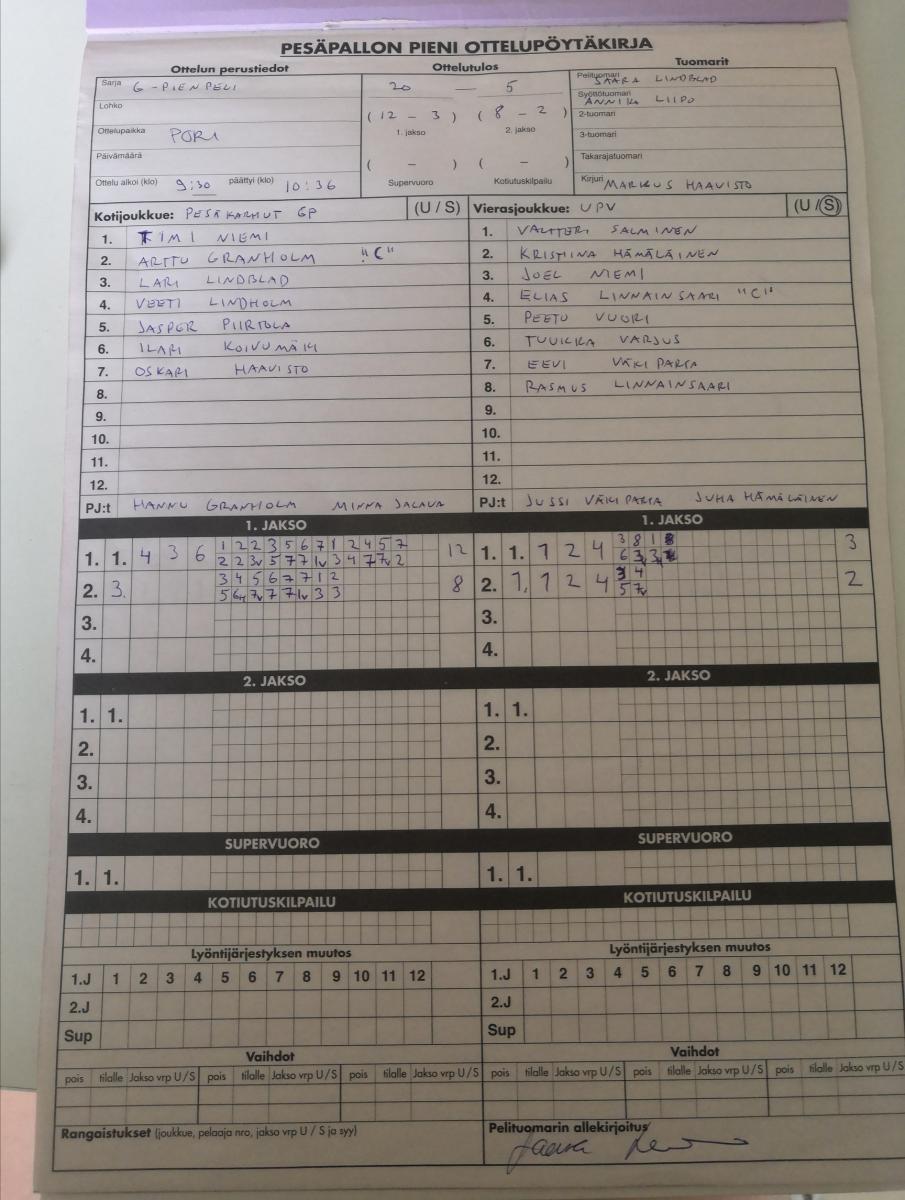 | 2.8.2020 09:30 | UPV G Punainen | Pesäkarhut Gp Punaiset | 7-24 | näytä | |