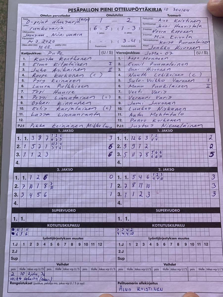 | 15.8.2020 00:03 | Kuopio | PuPe | JoMa 06 | 0-2 (1-13, 1-29) | näytä |