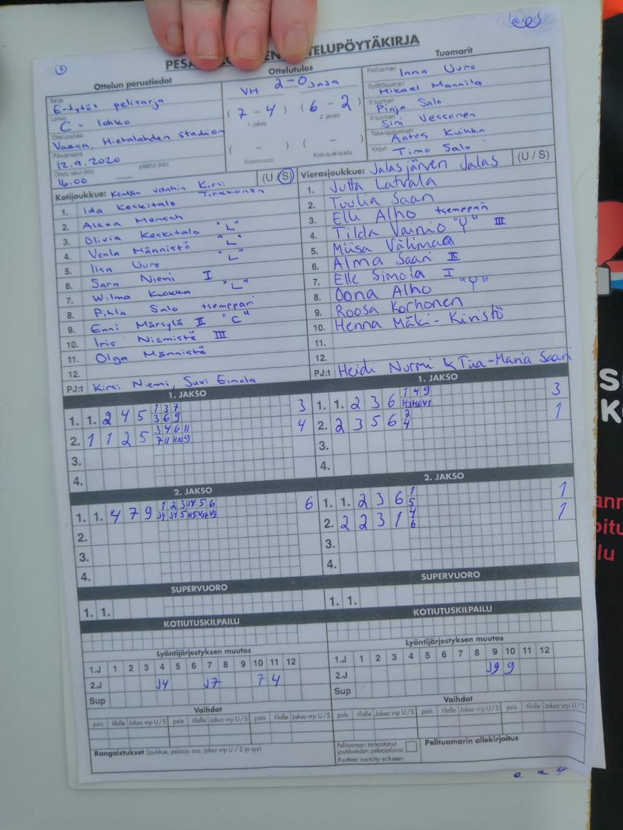 | 12.9.2020 18:00 | VM E-t oranssi | JaJa | 2-0 (7-4, 6-2) | näytä |