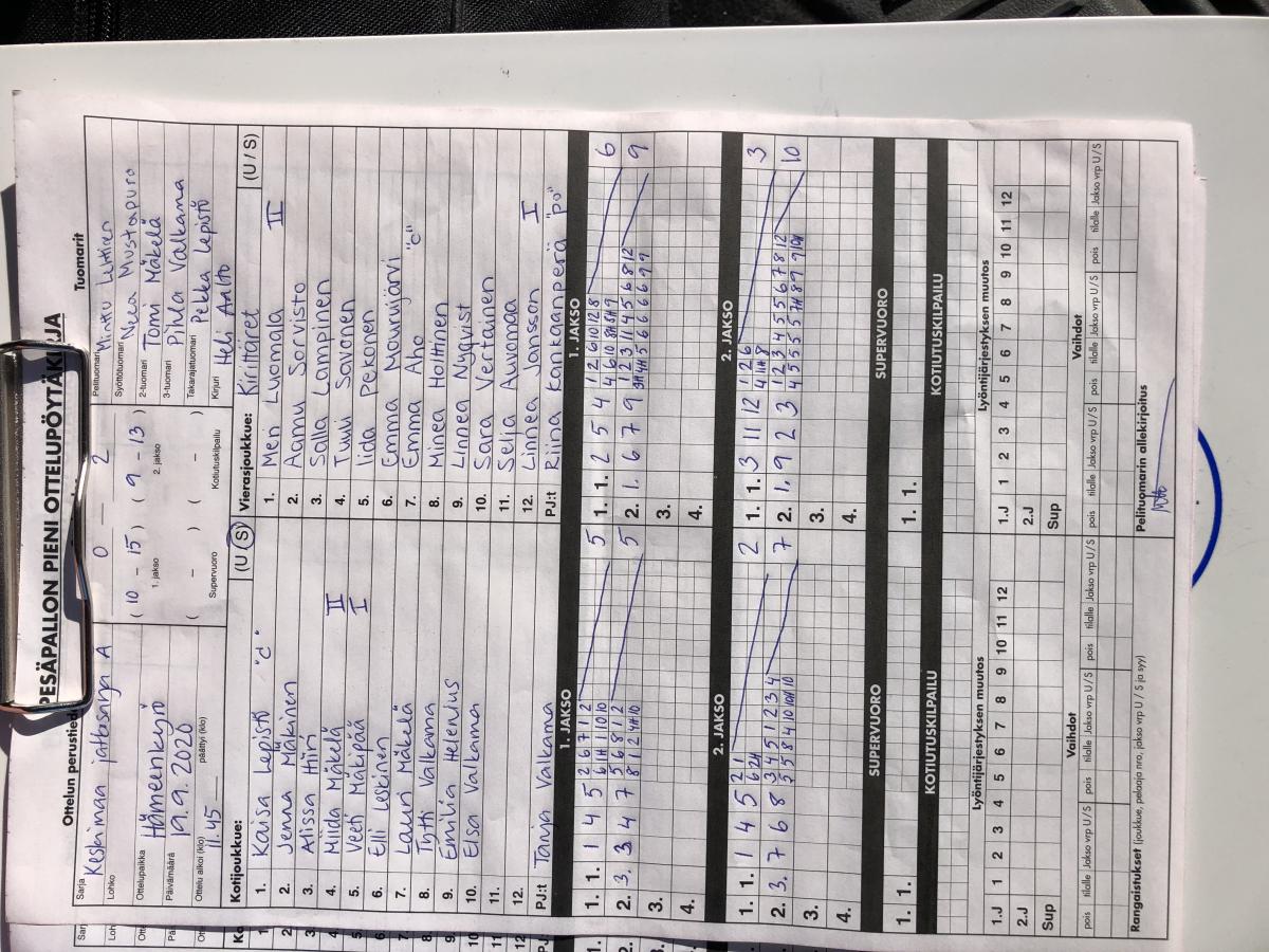 | 13.9.2020 12:00 | Kirittäret E-Tytöt | Räpsä E-tytöt | 0-1 (11-14, 14-14) | näytä | |