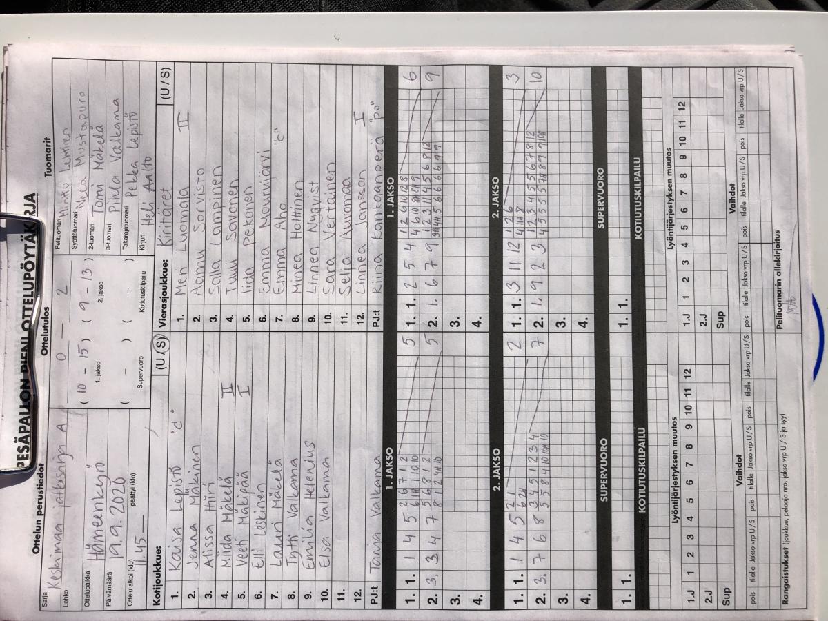 | 7.7.2020 18:30 | Kirittäret E-Tytöt | Kiri F | 1-2 (6-13, 11-6, 0-0, 1-4) | näytä | |