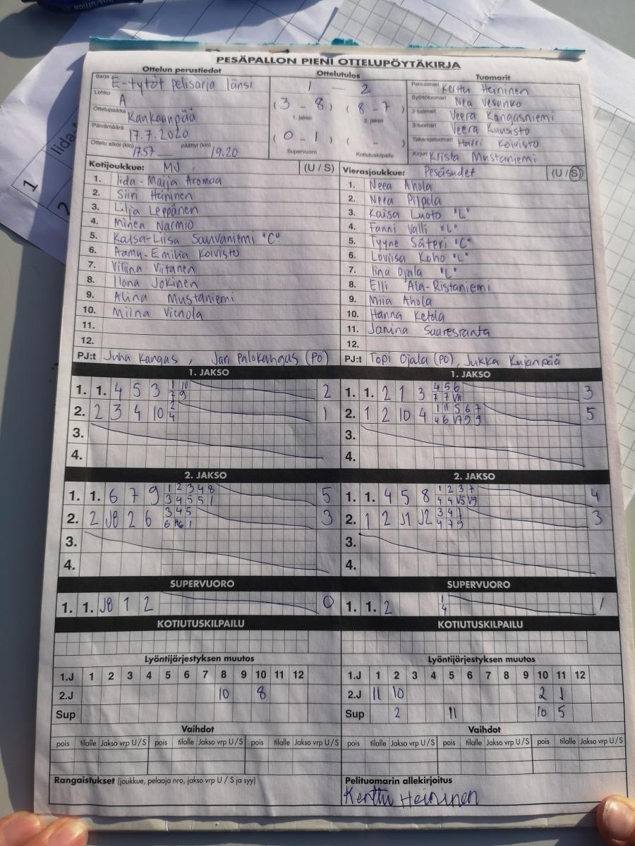 | 16.8.2020 16:00 | MJ | UPV E-TYTÖT | 2-0 (11-10, 13-7) | näytä | |