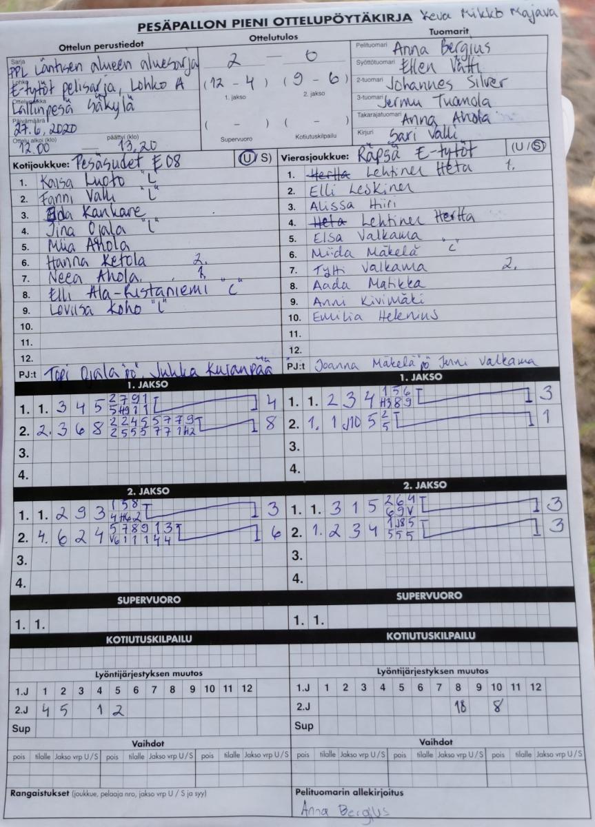 | 27.6.2020 12:00 | Pesäsudet E08 | Räpsä E-tytöt | 2-0 (12-4, 9-6) | näytä | |