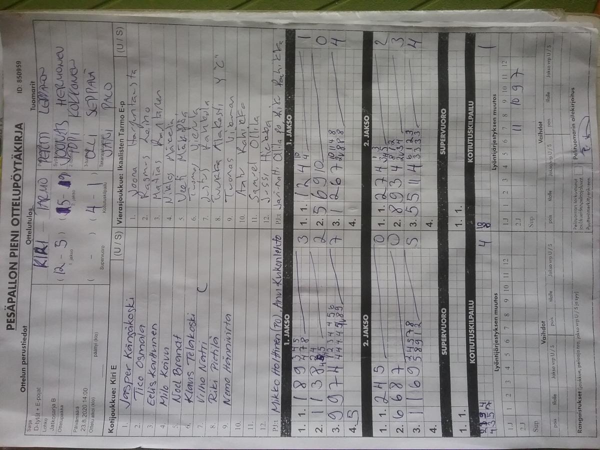 | 6.9.2020 16:00 | Kiri E | Ikaalisten Tarmo E-p |