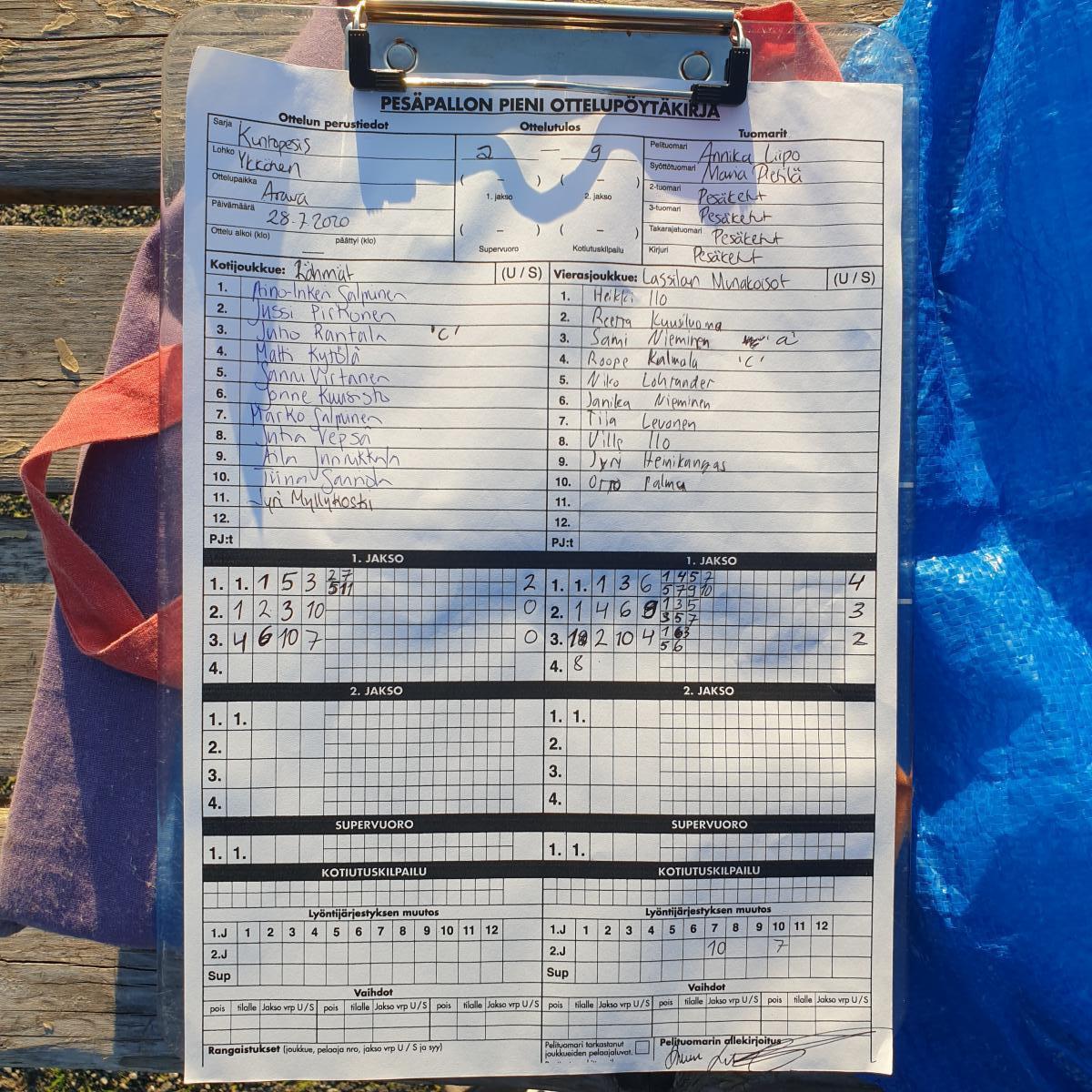 | Kuntopesissarja - Ykkössarja | 26.6.2020 18:00 | Suosmeri | Kakkosrajan Pomppu | Ellun Kanat | Rähmät |