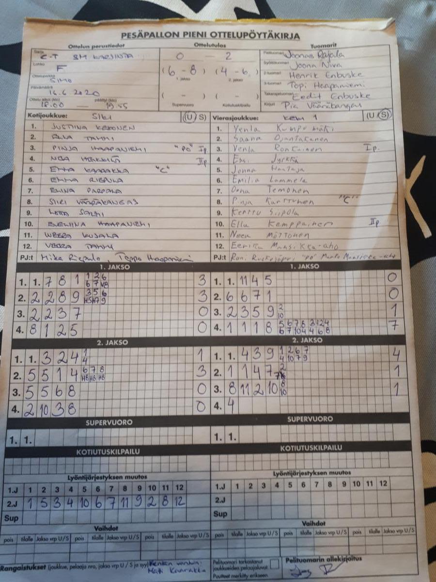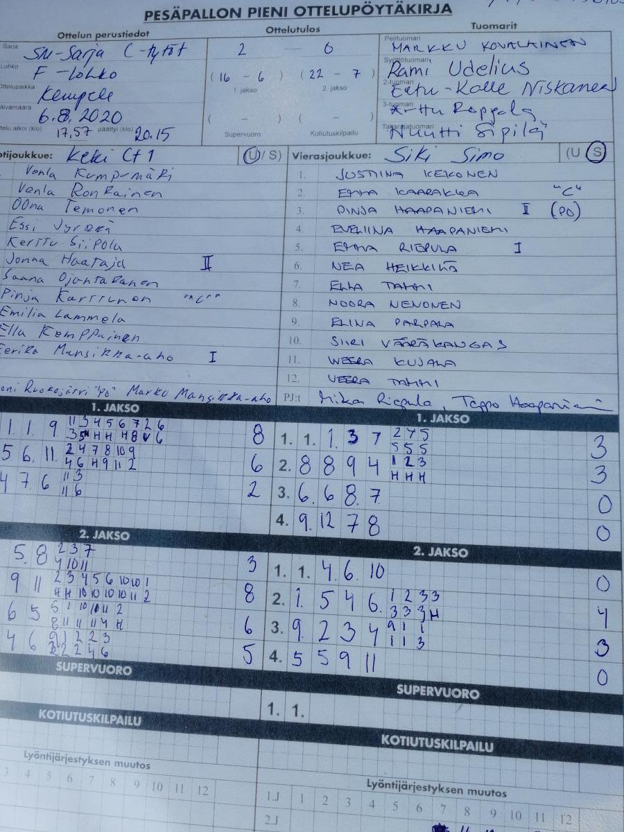 | 6.8.2020 18:00 | Kempeleen Kiri 1 | Simon Kiri | 2-0 (16-6, 22-7) | näytä |