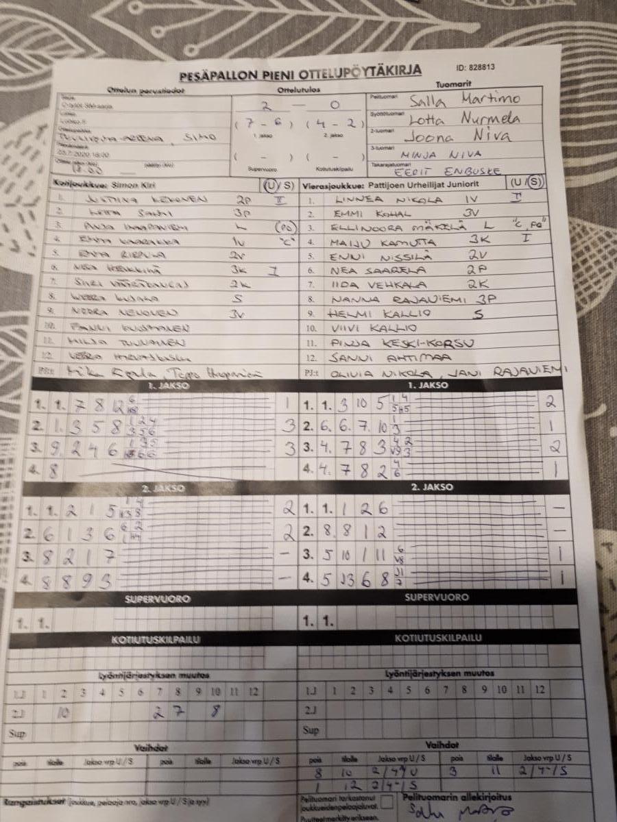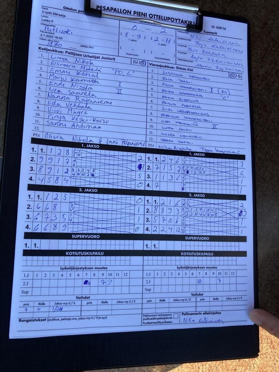 | 2.7.2020 18:00 | Pattijoen Urheilijat Juniorit | Simon Kiri | 0-2 (8-9, 2-13) | näytä | |