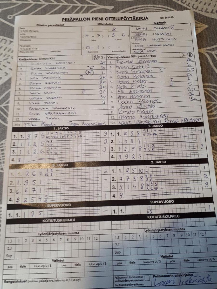 | 14.7.2020 18:00 | Kempeleen Kiri 2 | Simon Kiri | 2-1 (10-9, 8-20, 0-0, 4-3) | näytä | |