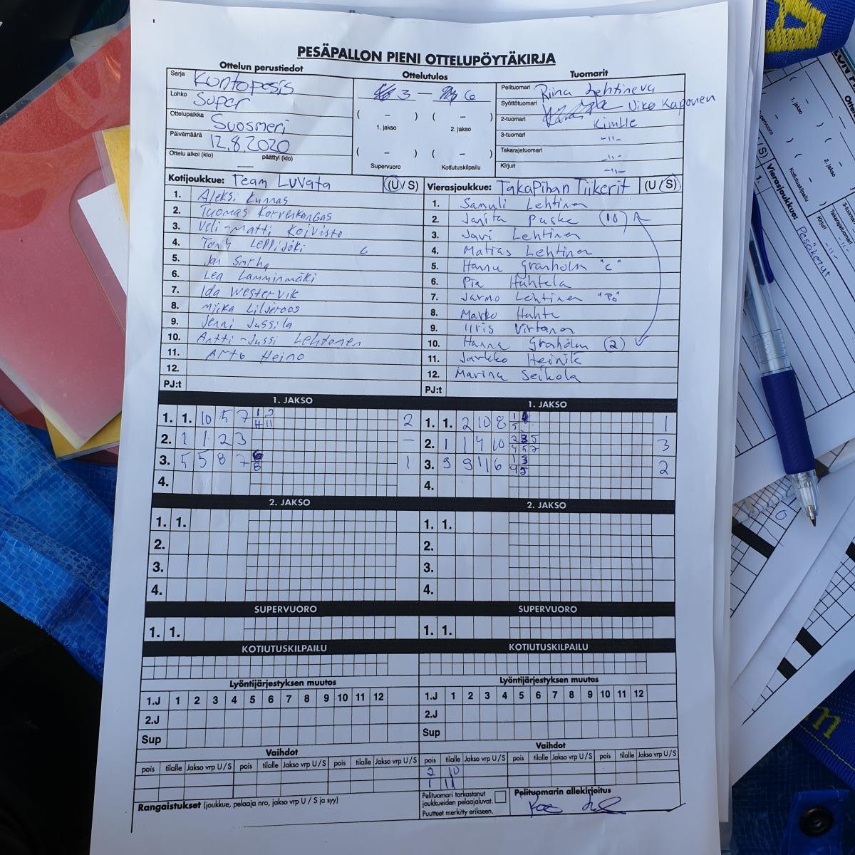| Kuntopesissarja - Supersarja | 12.8.2020 19:00 | Suosmeri | Team Kimble | Raatokärpäset | Team Luvata |