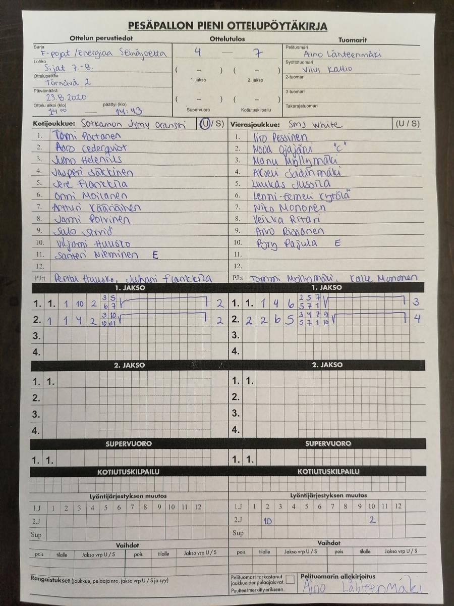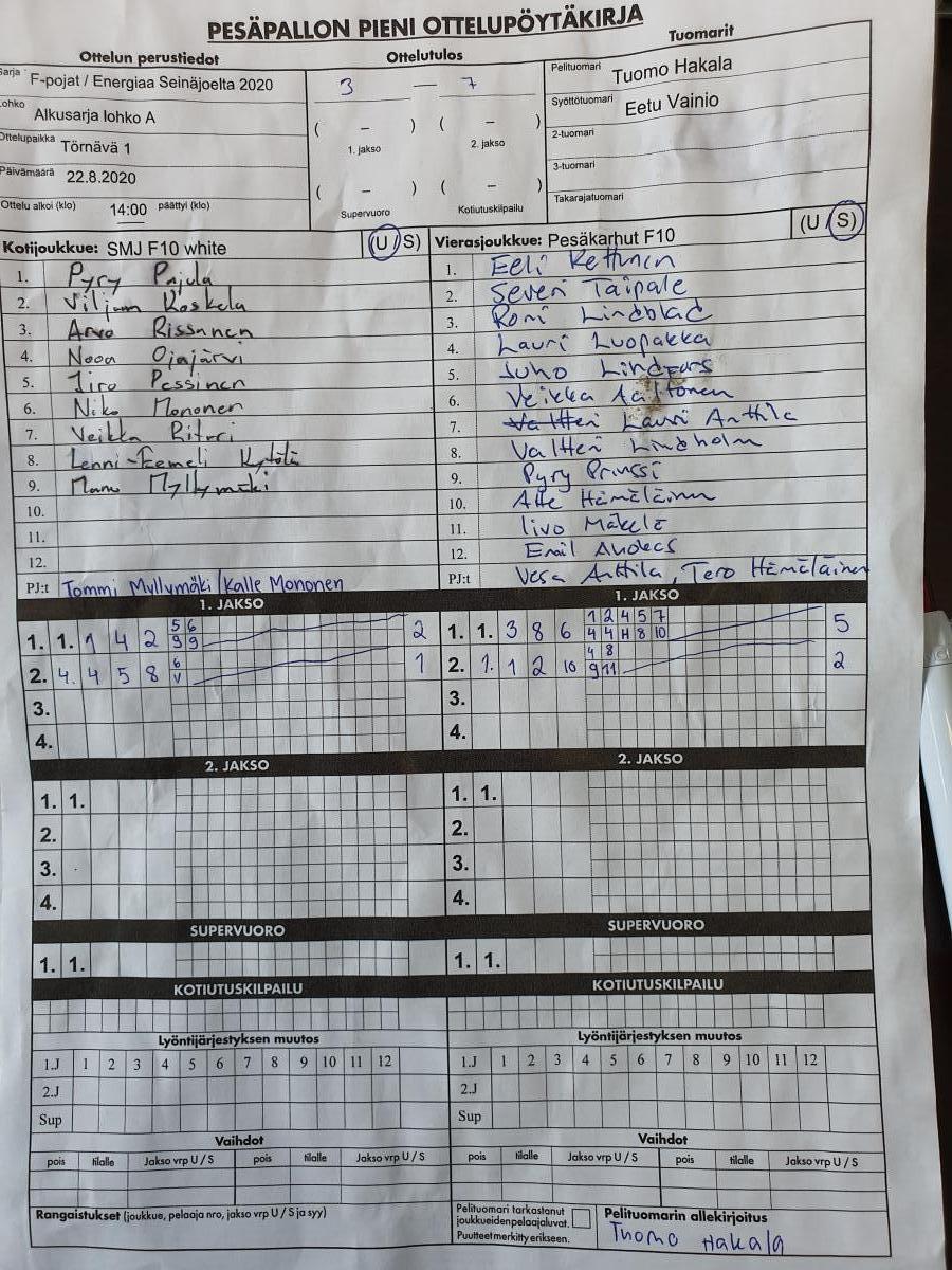 | 22.8.2020 14:00 | Törnävä 1 | SMJ F10 white | Pesäkarhut F10 | 3-7 | näytä |