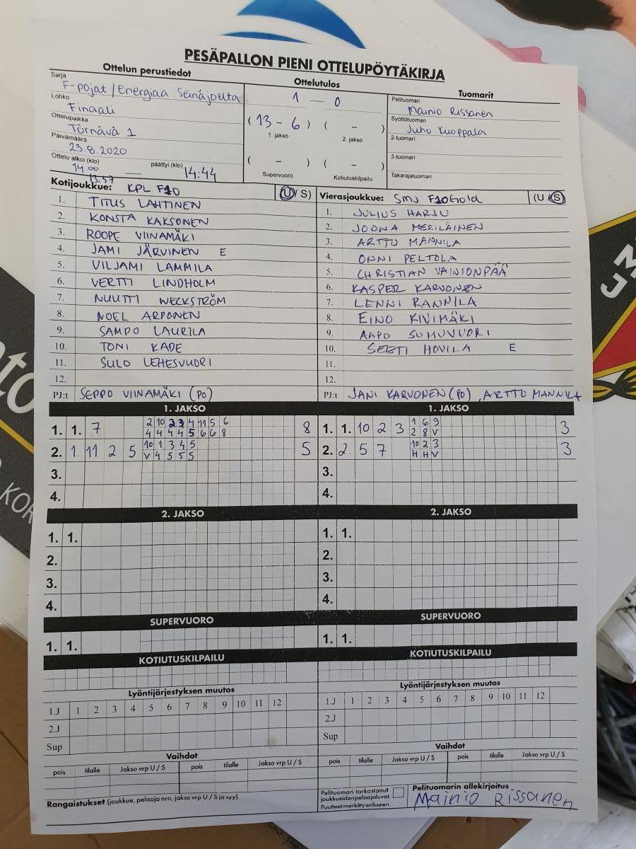 | 23.8.2020 14:00 | Törnävä 1 | KPLF10 | SMJ F10 gold | 13-6 | näytä |