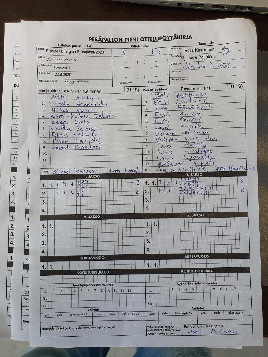| 22.8.2020 14:00 | Törnävä 2 | Tahko FP | AA 10-11 Keltainen | 12-6 | näytä |