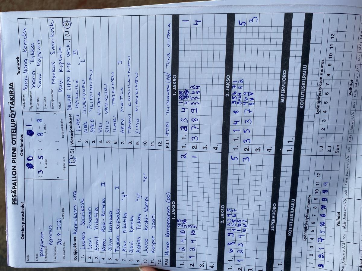 | 28.8.2021 | Kannuksen Ura E-pojat | Lippo -09 sininen | 2-0 (13-9, 1-0) |