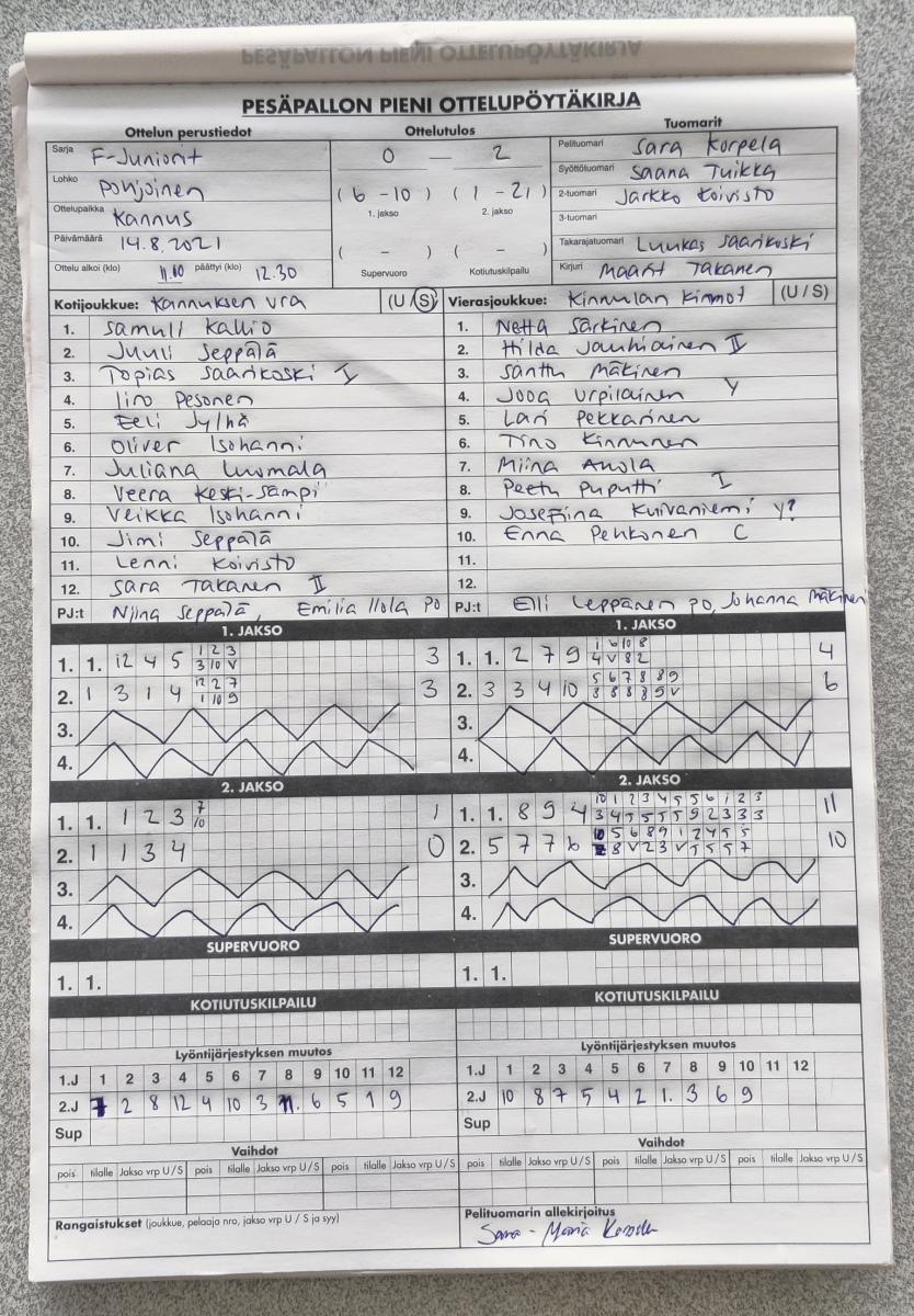 | 28.8.2021 | NiPe | Kannuksen Ura F-junnut |
