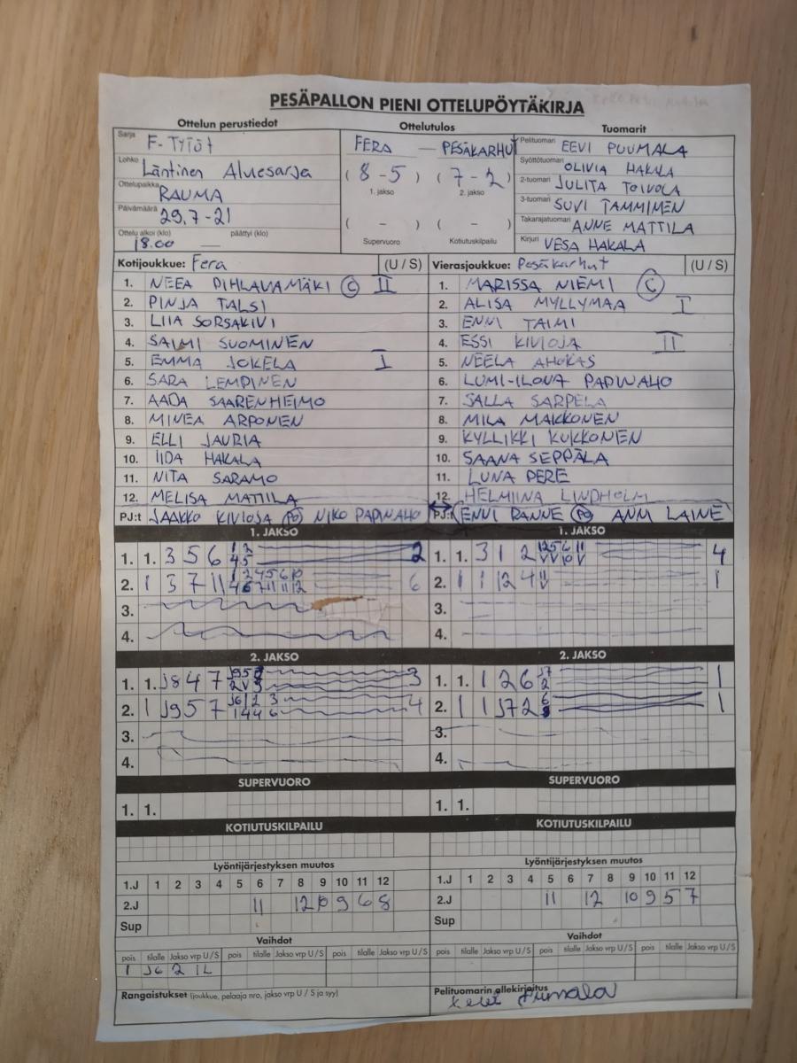 | 5.8.2021 18:00 | Fera F2 | Pesäkarhut F12 Mintut | 2-0 (14-10, 26-7) | näytä | |
