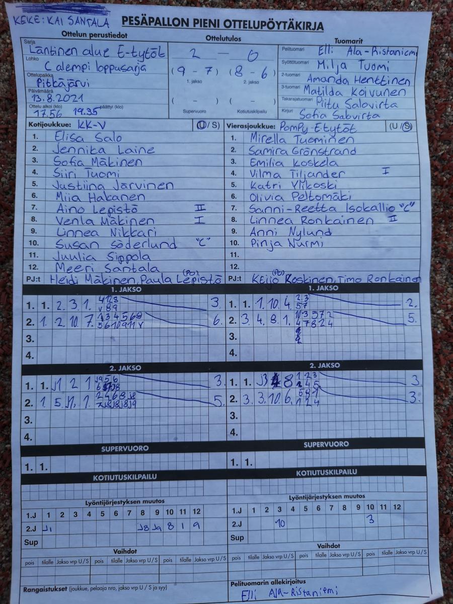 | 13.8.2021 18:00 | KK-V | PomPy E-tytöt | 2-0 (9-7, 8-6) | näytä | |