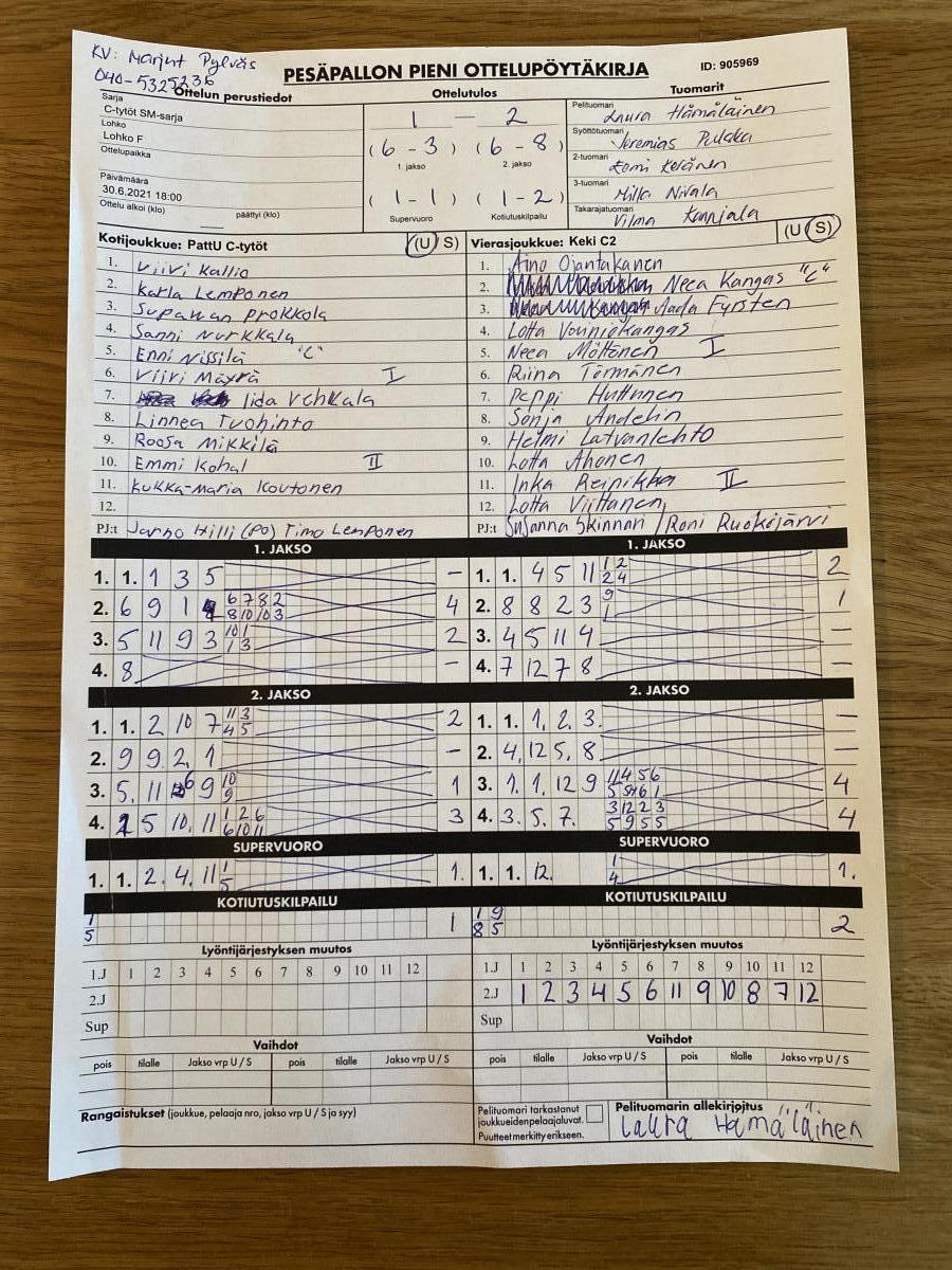 | 28.6.2021 18:00 | SiKi | PattU C-tytöt | 2-1 (14-11, 4-8, 4-1) | näytä | |