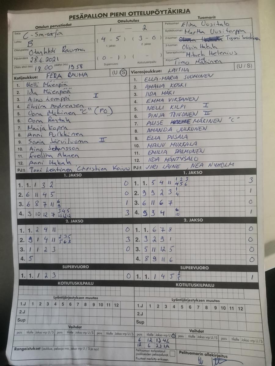| 8.7.2021 18:00 | Fera C | Pesäkarhut C-Punaiset | 0-2 (0-3, 5-6) | näytä |
