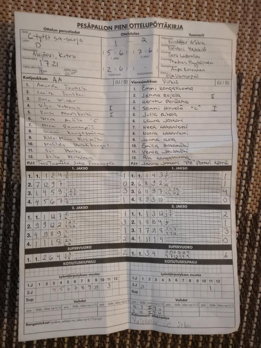 | 14.6.2021 18:00 | SMJ Punainen | Virkiä | 2-1 (3-4, 7-0, 3-0) | näytä | |
