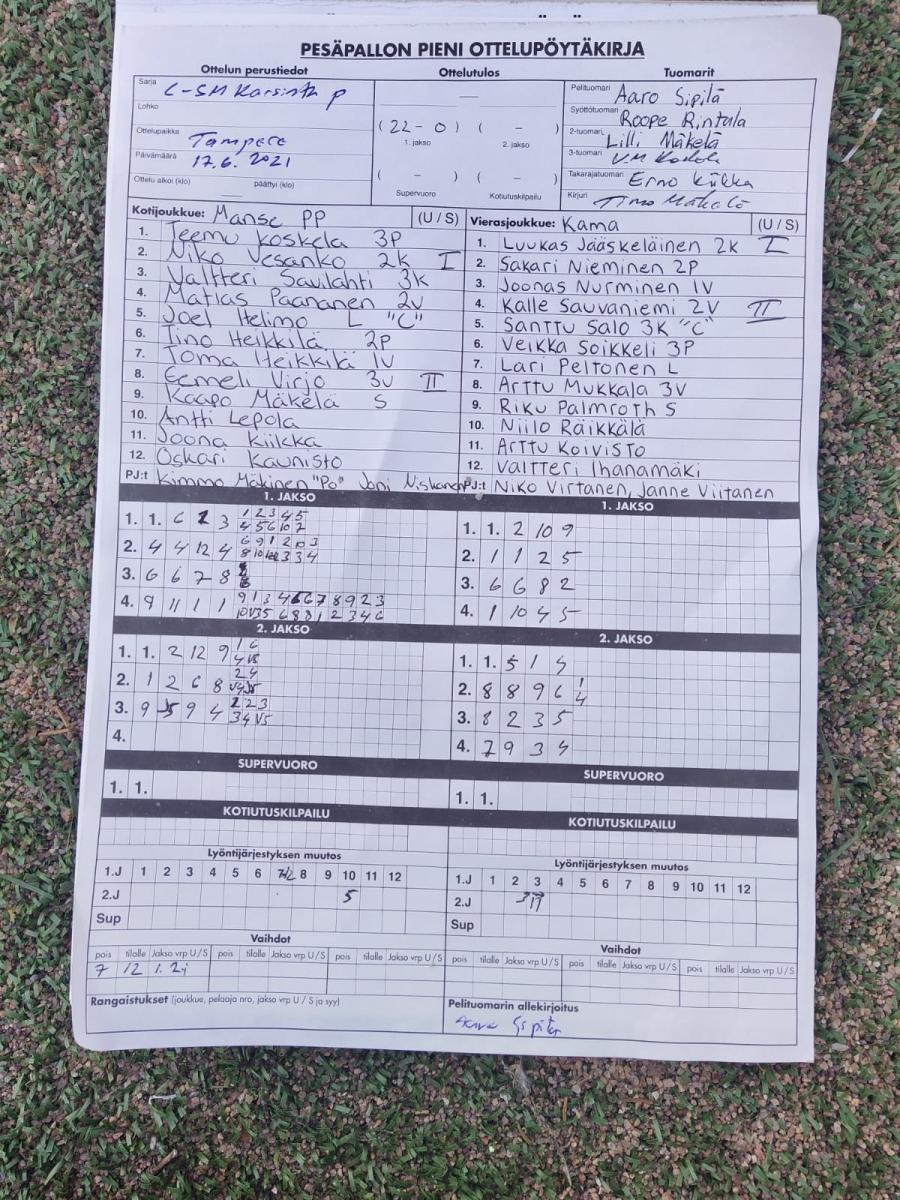 | 17.6.2021 18:00 | Manse PP | KaMa C-pojat | 2-0 (22-0, 7-1) | näytä | |