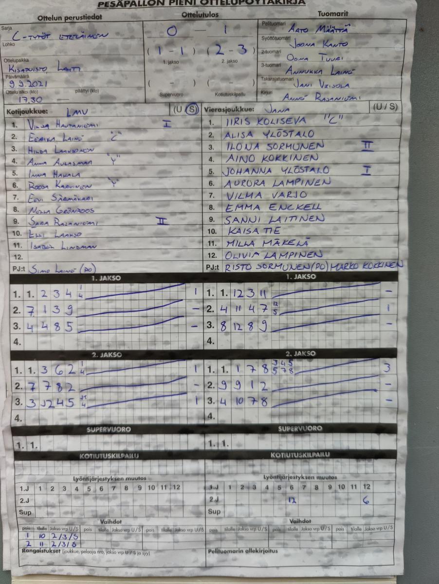 | 7.9.2021 18:00 | JANA CT | Vihti/Espoo | 1-2 (11-3, 2-5, 1-2) | näytä | |