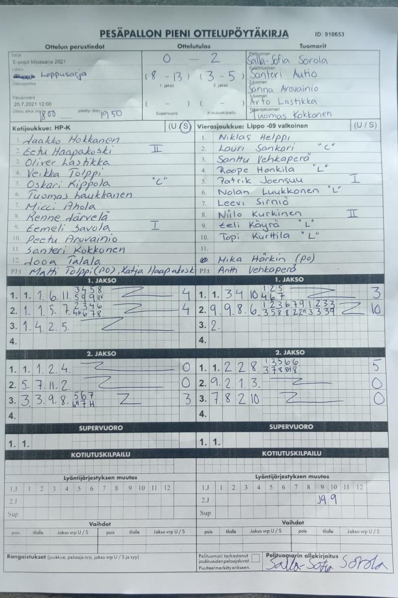 | 11.7.2021 | Sotkamon Jymy E2010 | HP-K | |||