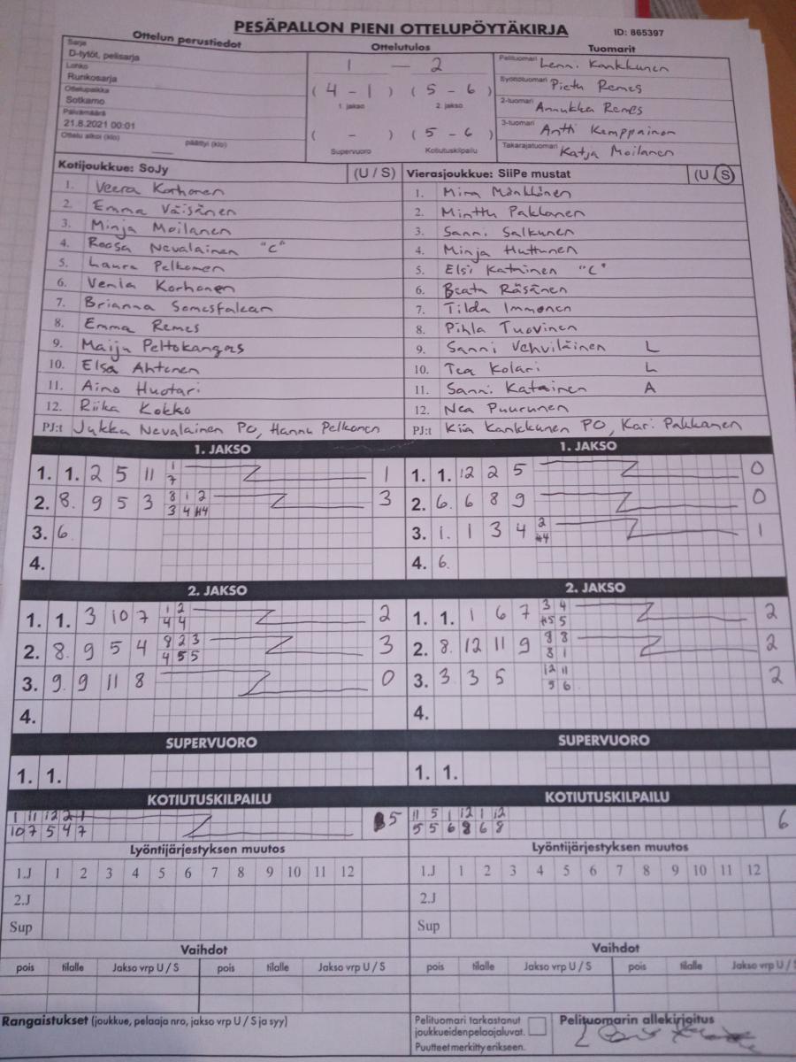 | 21.8.2021 00:01 | Sotkamo | SoJy | SiiPe mustat | 1-2 (4-1, 5-6, 5-6) | näytä |