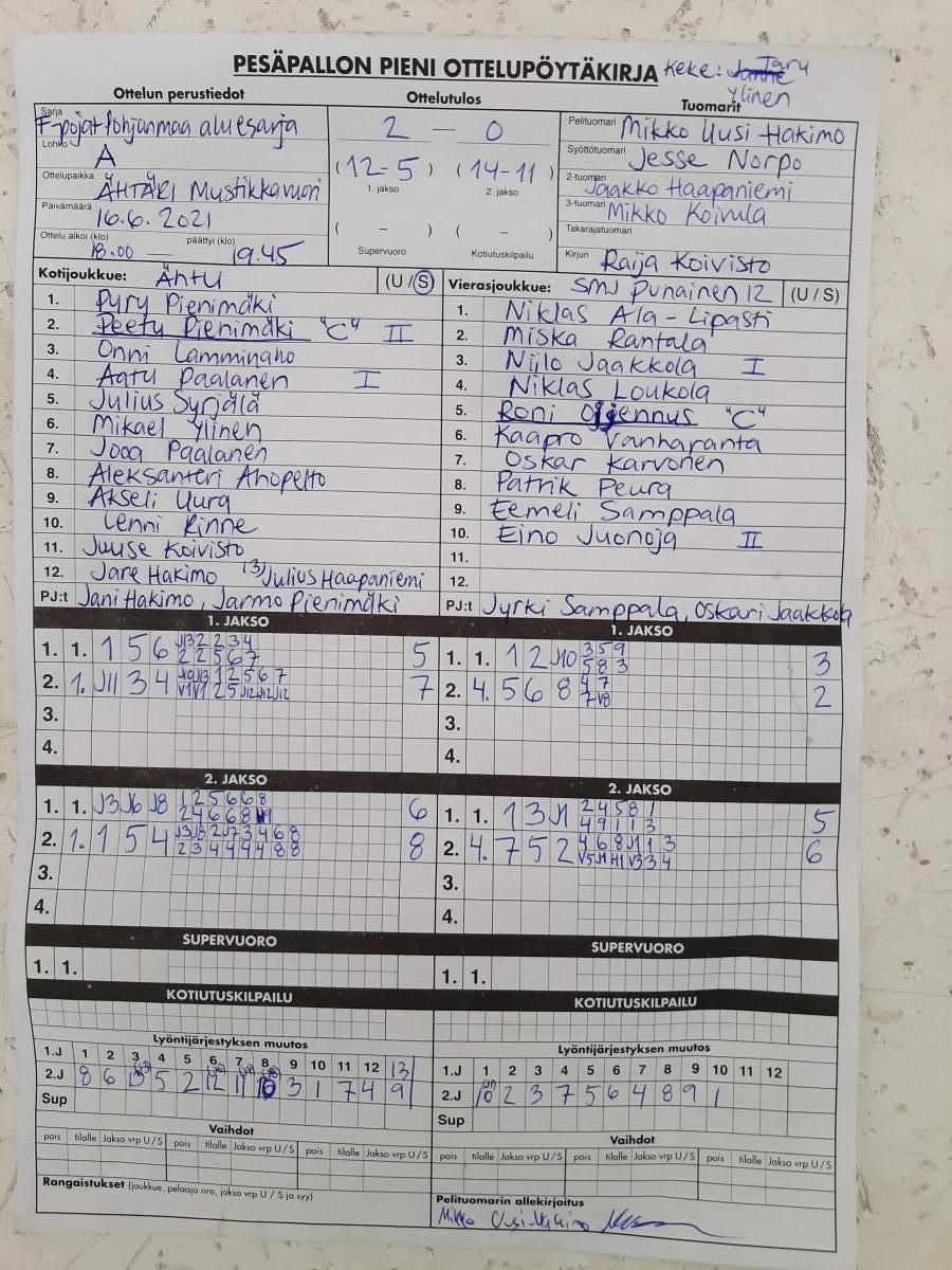 | 16.6.2021 18:00 | ÄhtU F-pojat | SMJ-P12 Punainen | 2-0 (12-5, 14-11) | näytä | |