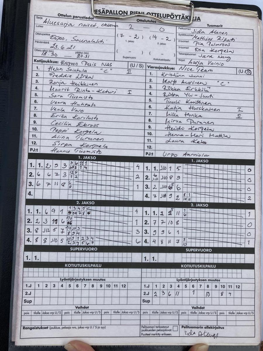 | 23.6.2021 00:00 | Espoo NAS | Nice Team | 2-0 (7-2, 14-2) | näytä | |
