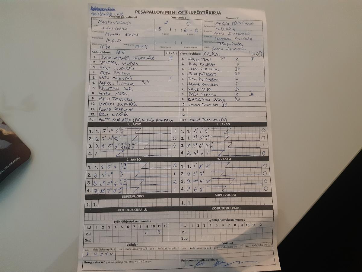 | 14.6.2021 18:00 | APV | Kylävuoren Kaiku | 2-0 (5-1, 6-0) | näytä | |