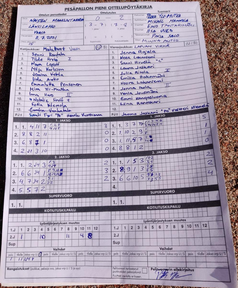 | 7.8.2021 14:00 | Virkiä | Mailattaret | 2-0 (16-4, 4-3) | näytä | |